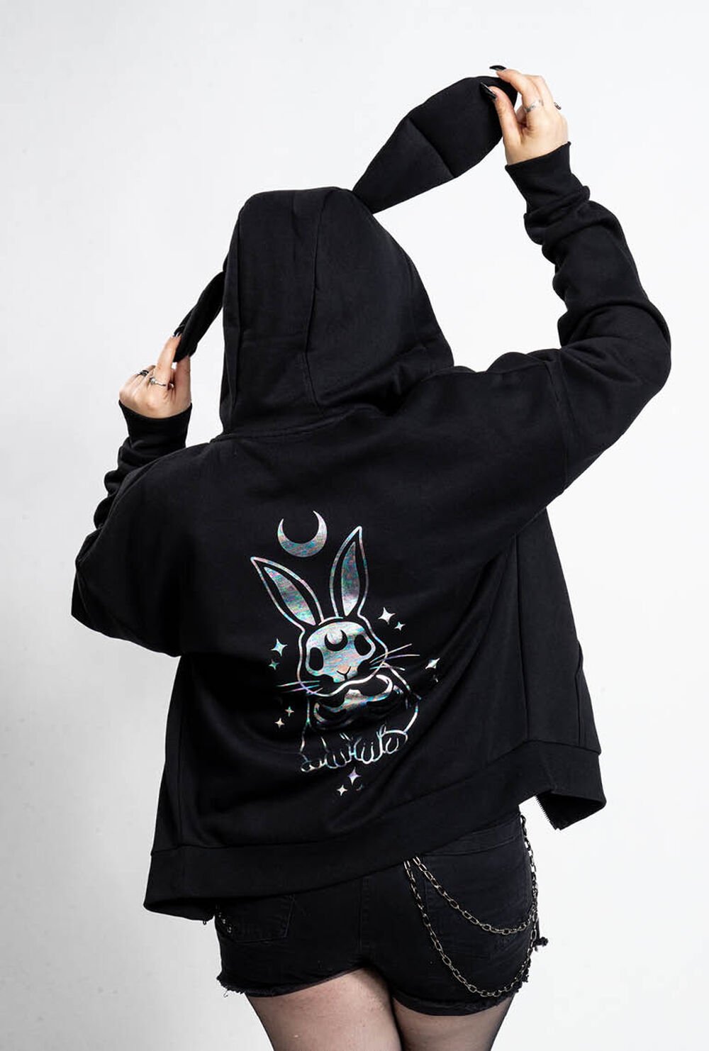 | Details | ribbed cuffs, embroidery, front print , back print, attached ears |